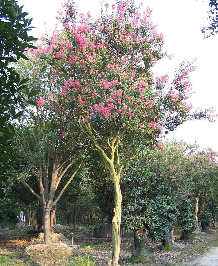 紫薇花色鲜艳美丽,花期长,寿命长,树龄有达200年的,热带地区已广泛栽培为庭园观赏树,有时亦作盆景。